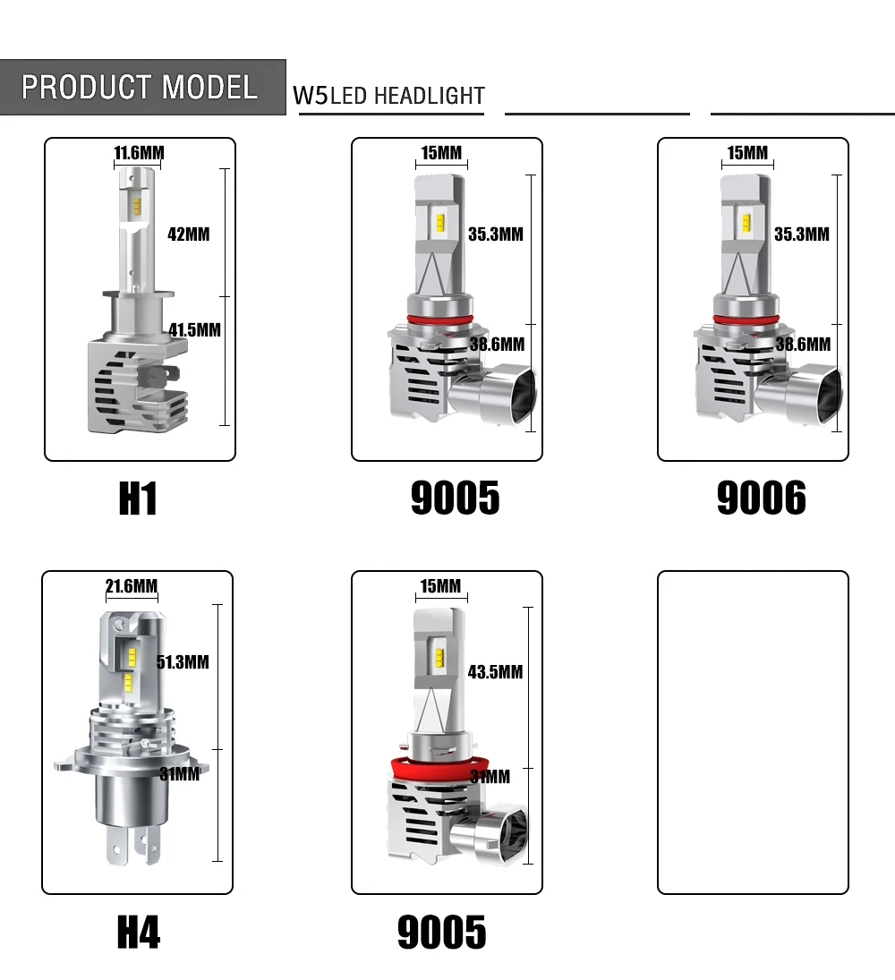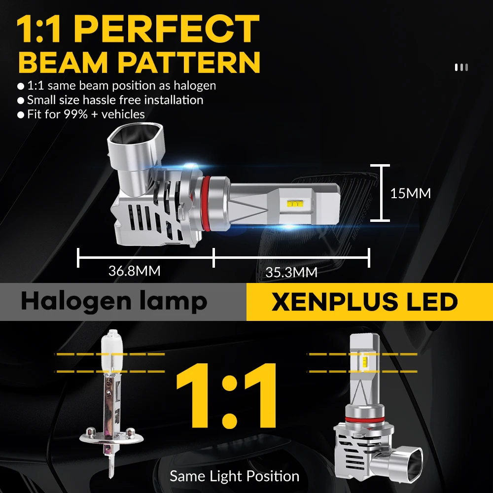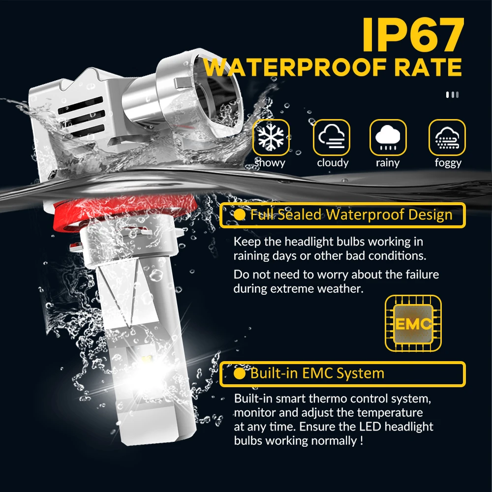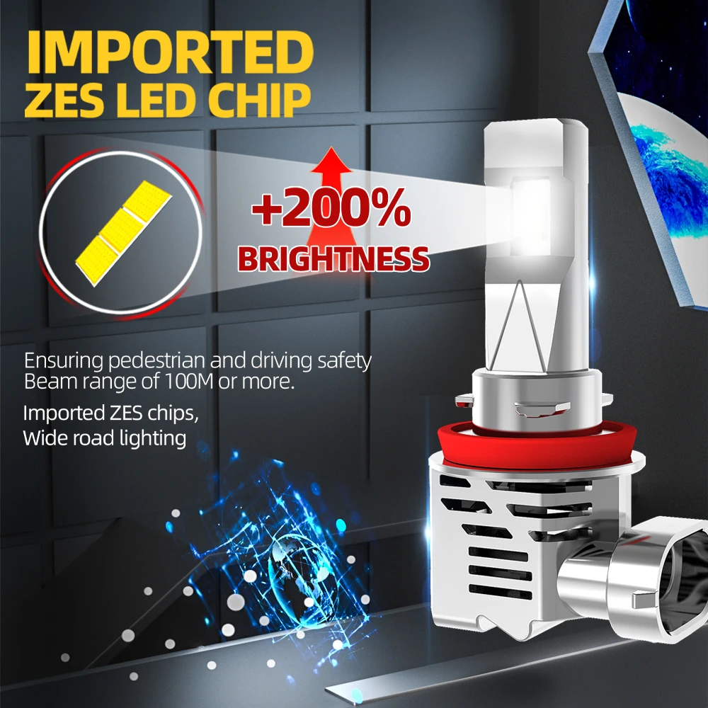 EXPO MACH W5 H11/H8/H9 LED Bulbs 300% Brighter 6500K Cool White Wireless LED Conversion Kit LED HEADLIGHT BULBS