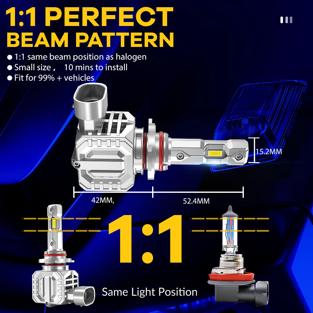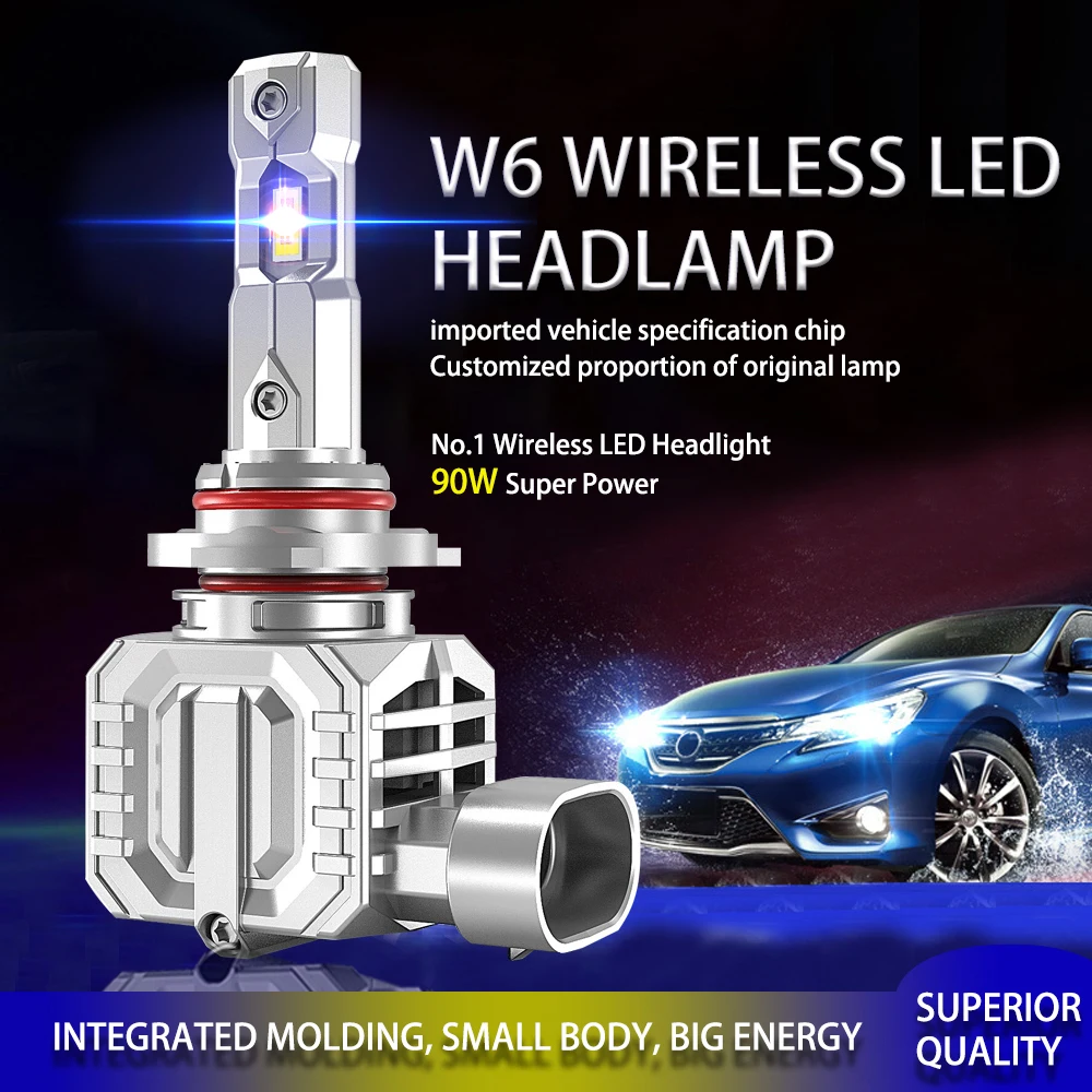 EXPO MACH W6 Plug and Play 90W 1:1 Size Fog Light 9005 9006 H10 9012 Halogen Replacement wireless Led Headlight