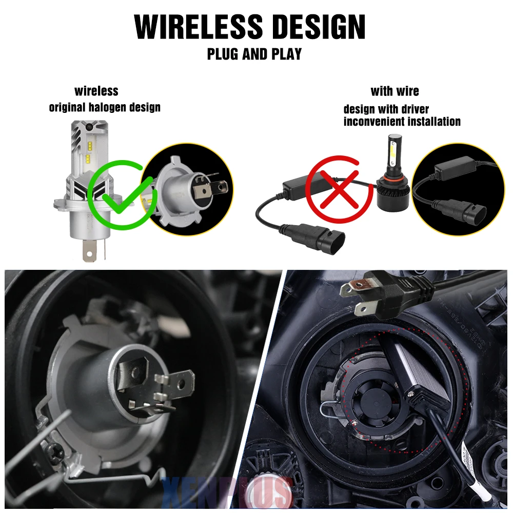 Xenplus Factory Price ZES Chip W4 3200LM H4 H7 H8 H9 H10 H11 Intelligent Temperature Control System Fanless LED Headlight Bulbs