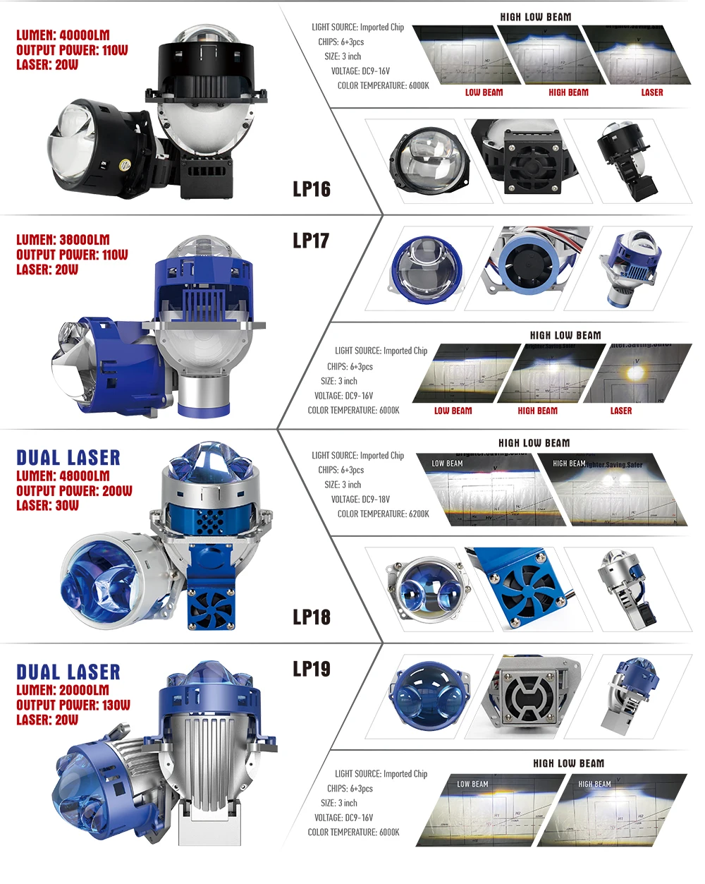 Factory price LF4 3 INCH 12V 130W 30000LM 5500K high beam low beam LED laser projector CAR fog light