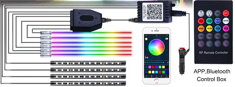 * 【THREE WAY TO CONTROL】 There are three way for choice to control car lights led, you can change color via APP, remote controller or control box. You can quickly switch the lights from a multi-color fade to a static color without fumbling through your phone app.