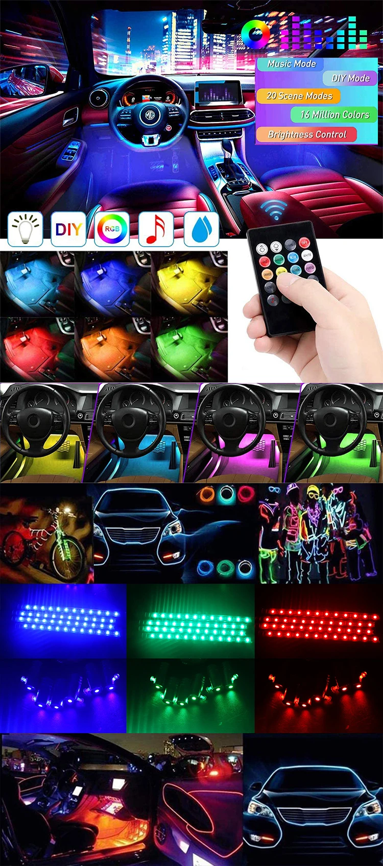 * 【Music/Sound Sync】 The music mode of the led lights strip for cars is pretty great, depends of the type of music on how accurate it is with playing to the beat, car led lights interior pick up any sound even if it’s the car radio. LED car lights have various modes, including solid, flashing, color dimming, timing, fade and more. Rocks your head and sing the song, feel each beat with music!