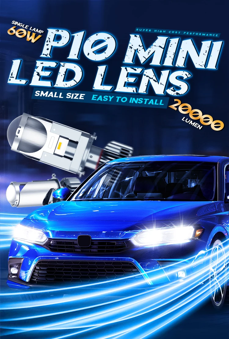 NEW P10 60W 8-32V 10000LM 6000K Customized CHIP MINI led projector lens h4