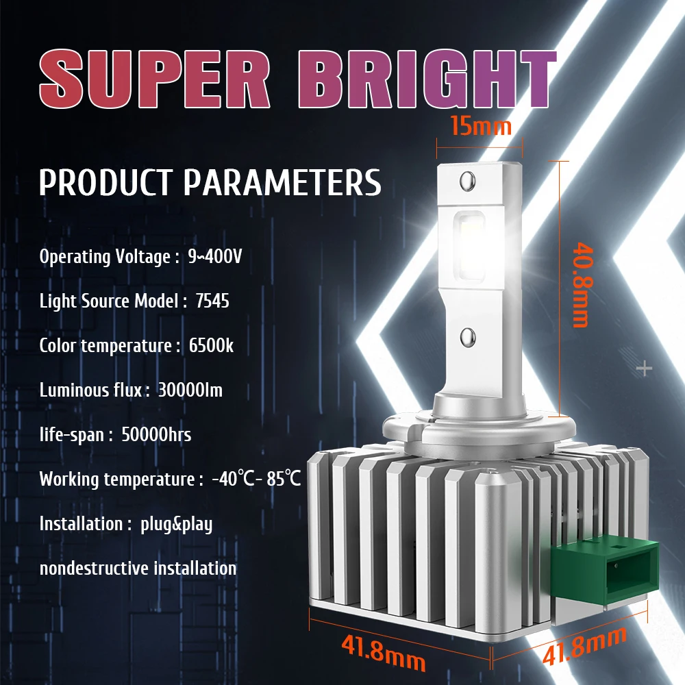 XENPLUS DA8 30000LM 6500K 15PCS Import Chips Double Copper Tube D1S D1R D2S D2R D3S D3R D4S D4R D5S D8 LED Headlight Bulb