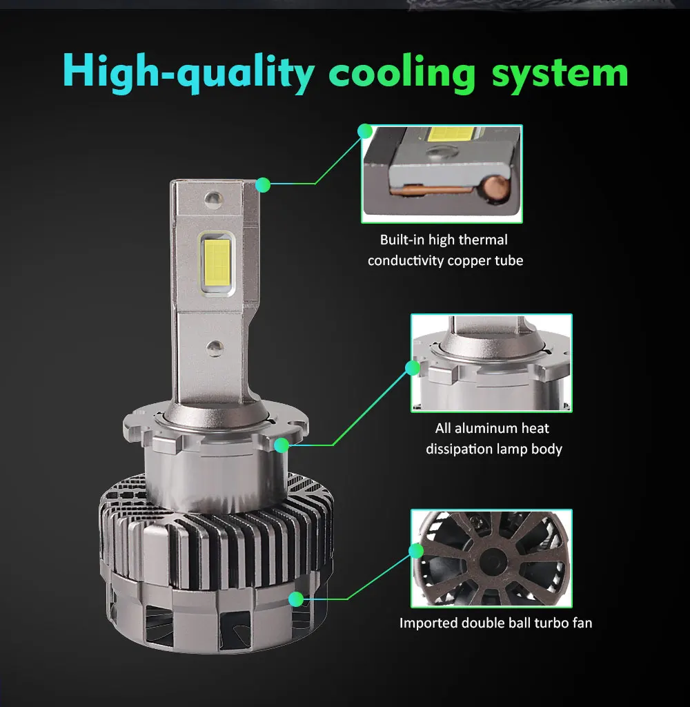 DS2 LED Headlight : LED belongs to cold light source, double copper tube and fan dual heat dissipation, fast heat dissipation system, no damage to lampshade.