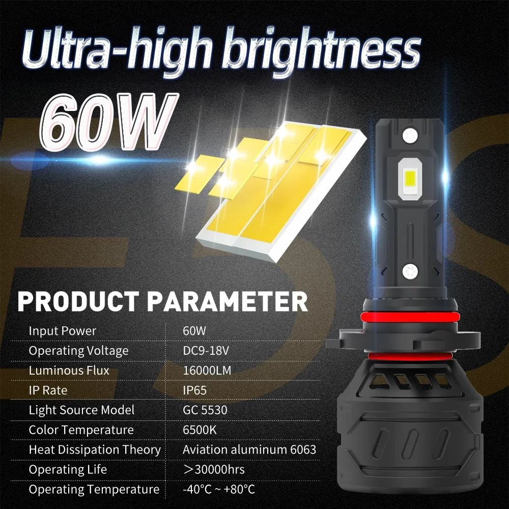Xenplus E5S H4 H7 H11 9005 9006 Bulb 16000Lm Car Led Hb3 9005 Led Headlight 60W 6500K