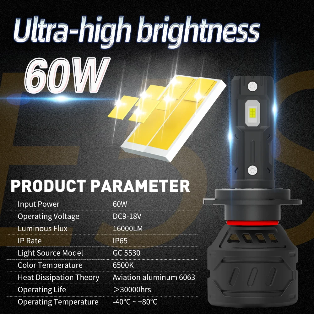 Xenplus E5S Led Headlight H7 60W 6500 Kelvin 16000Lumen 5530 Chips Mini Led Headlight
