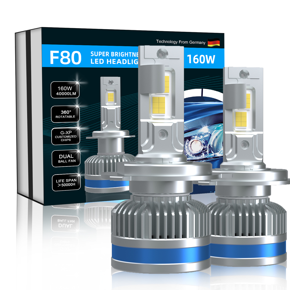 Xenplus F80 H4 160W 40000LM 3575 chips Led Light Auto System Dual Beam Kit Plug and Play for Car Bright Light Replacement
