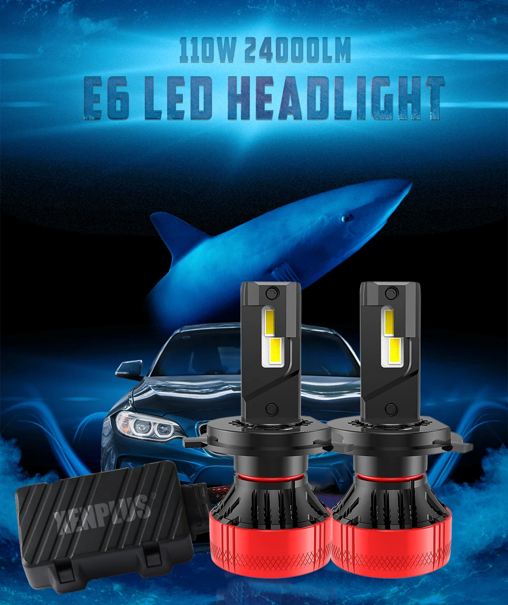 Xenplus High Power 12V 110W 24000LM 6500K G-XP Chip Dual Beam E6 H4 H7 H11 Car Led Headlight Bulbs