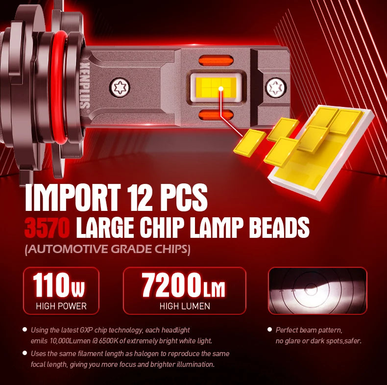 <800% Brighter Than Halogen>:U20 LED HEADLIGHT made with high quality automotive grade LED CHIPS, with 120W/pcs, 45000LM in total. 6500K white, super focused beam pattern design allows you to see further and clearer for safe driving. 8 times brighter than the original halogen bulbs.