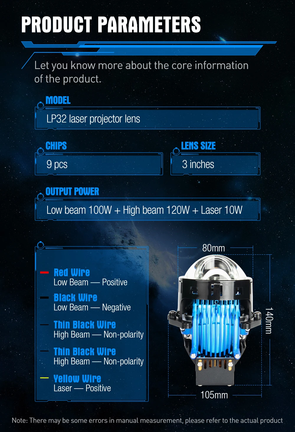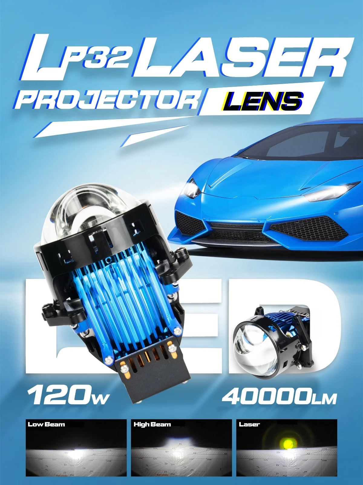 Xenplus LP32 RHD/LHD Bi LED Projector Lens 120W 40000LM White Fog Light 90W Laser Logo 6500K 12V Headlamp with Aluminum Material