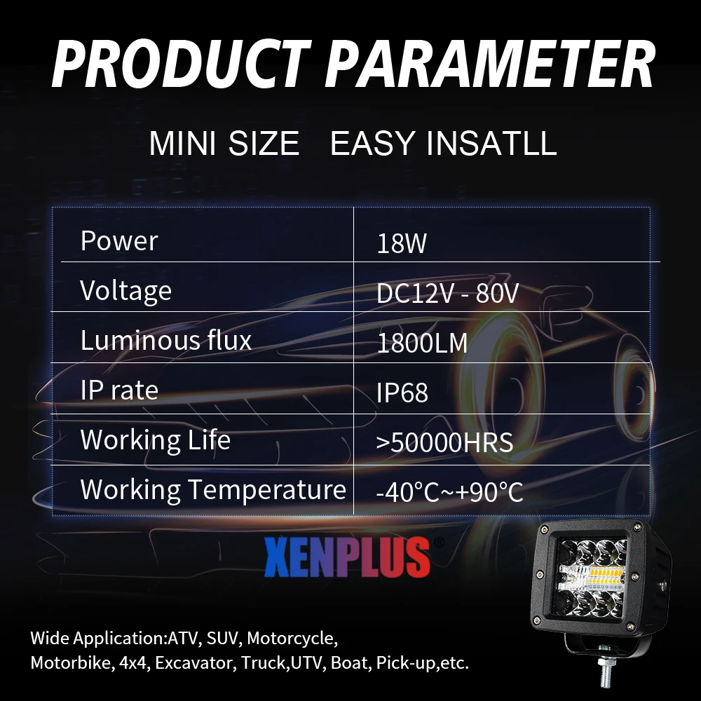 Xenplus LW10 4 Inch Waterproof IP 68 LED Work Light White & Amber 24V offraod work light for truck Motorcycle