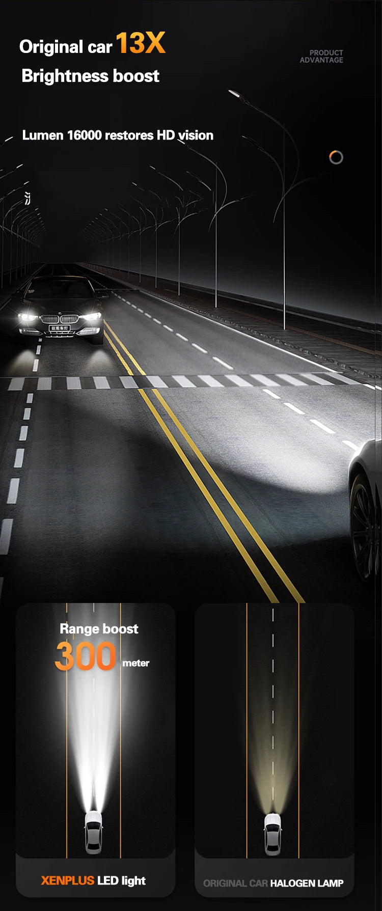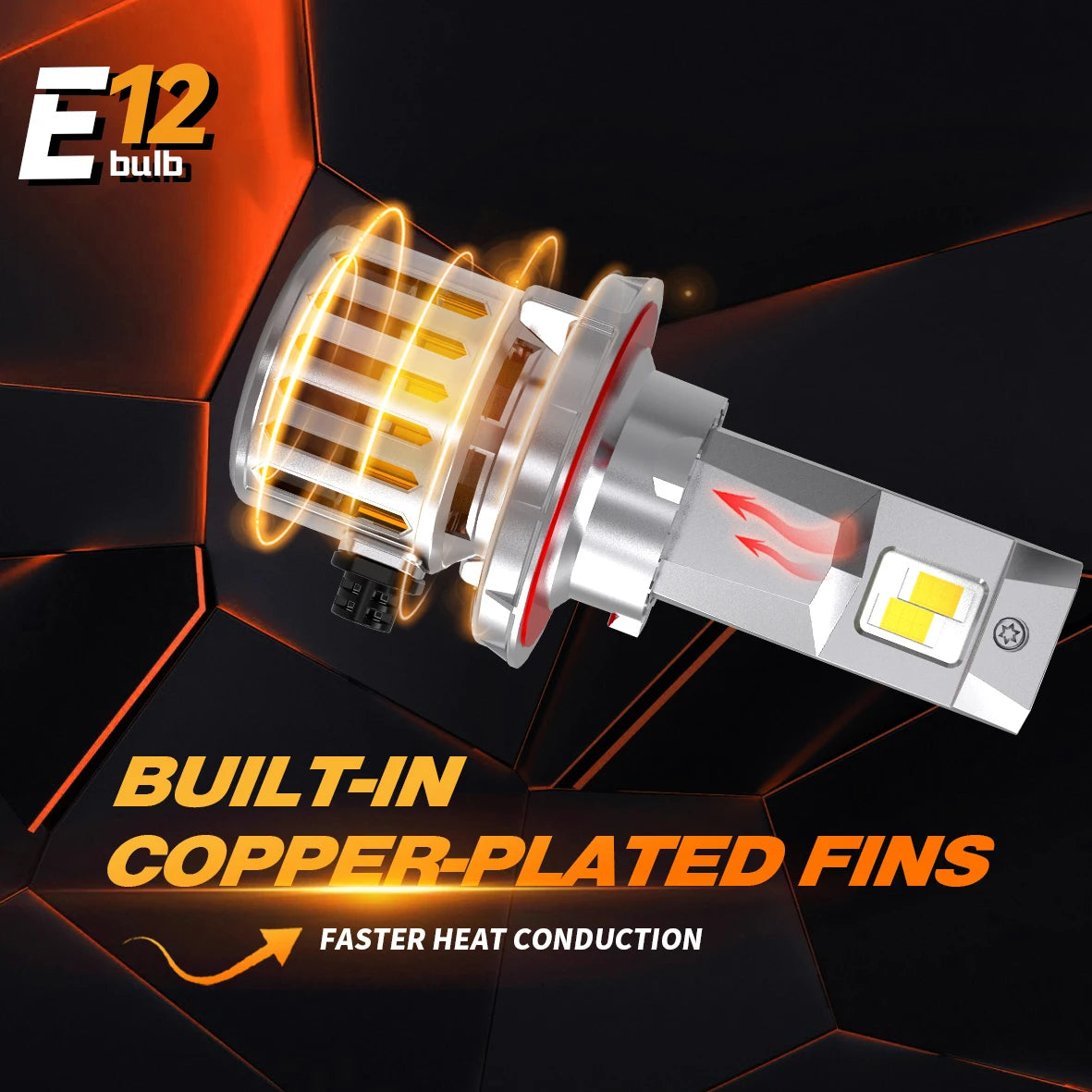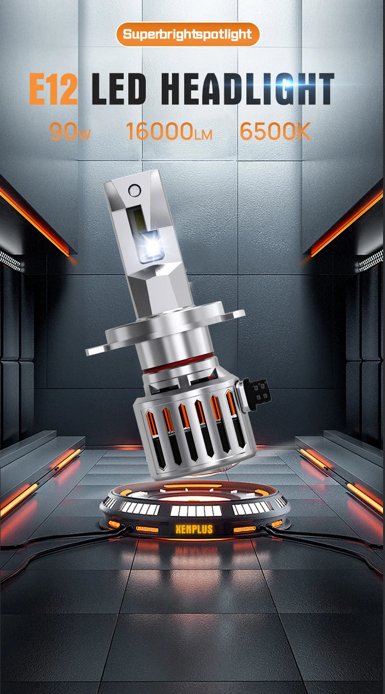 <800% Brighter Than Halogen>:E12 LED HEADLIGHT made with high quality automotive grade LED CHIPS, with 90W, 16000LM in total. 6500K white, super focused beam pattern design allows you to see further and clearer for safe driving. 8 times brighter than the original halogen bulbs.