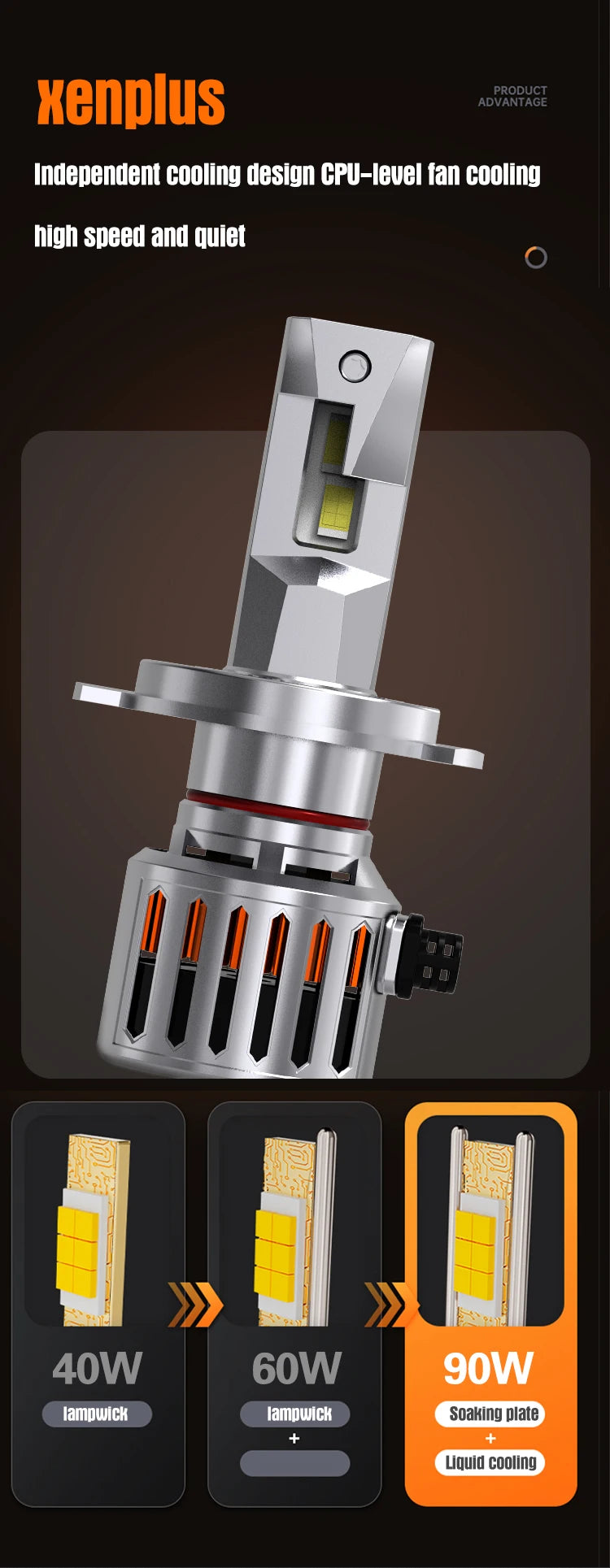 <Over 5,0000 Hours Lifespan>: Aviation aluminum body, Double“L” heat tube for heat dissipation and unique heat sink design with 15000RPM cool fan provides outstanding cooling performance and durability, equivalent to 100 halogen bulbs.
