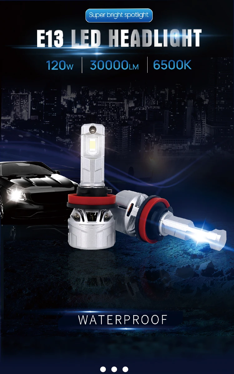 <800% Brighter Than Halogen>:E13 LED HEADLIGHT made with high quality automotive grade LED CHIPS, with 55W, 30000LM in total. 6500K white, super focused beam pattern design allows you to see further and clearer for safe driving. 8 times brighter than the original halogen bulbs.