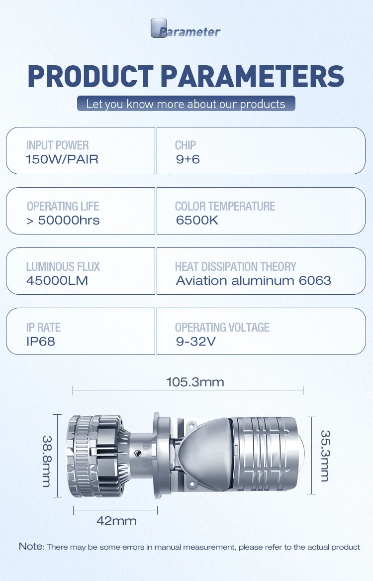 Xenplus Super Bright P18 12v Canbus H4 150w 6500k 45000Lm Cooling System 9+6 Chips Led Motorcycle Car Mini Len Headlight