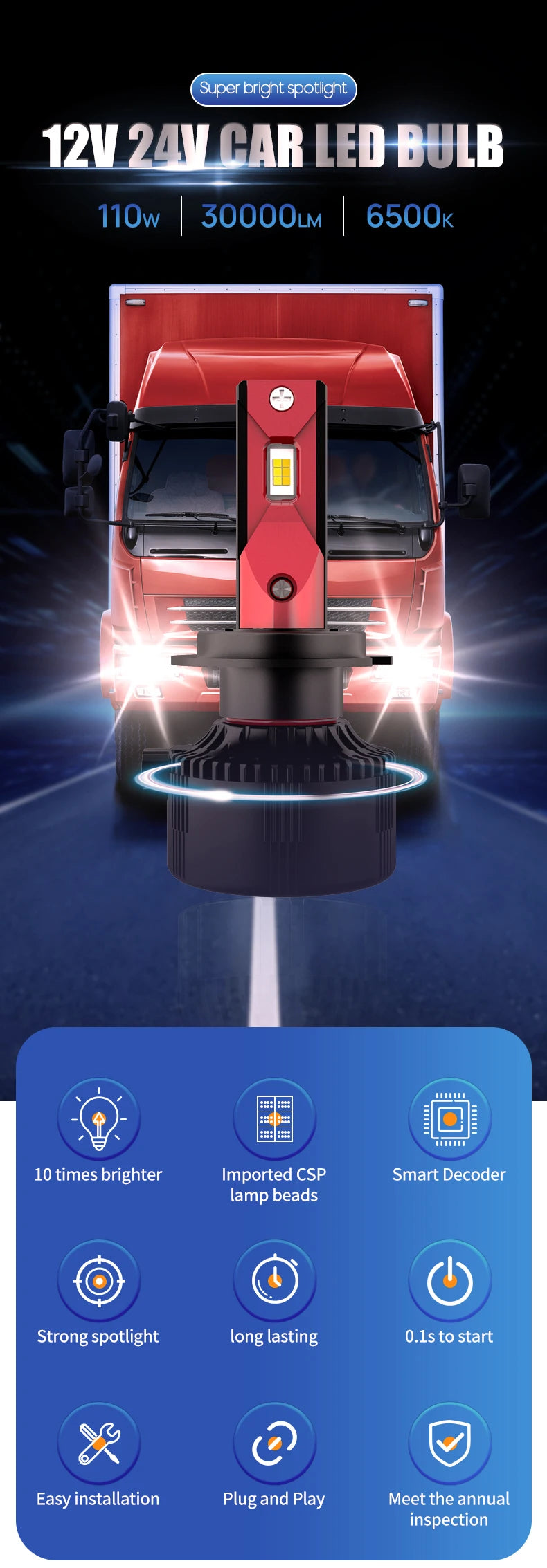 Xenplus T19 H4 Led 3 Color Changing Car Headlights Fog Lights 3000k 4500k 6500k 110w Auto Lights 9004 H13 Three Color Led Lamps