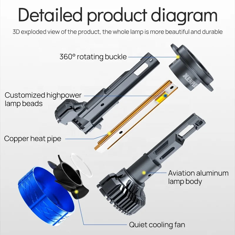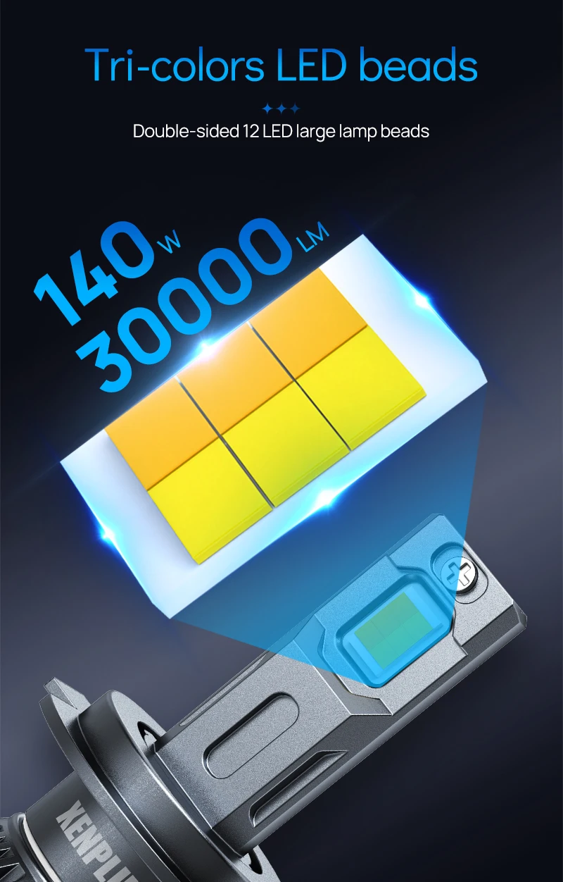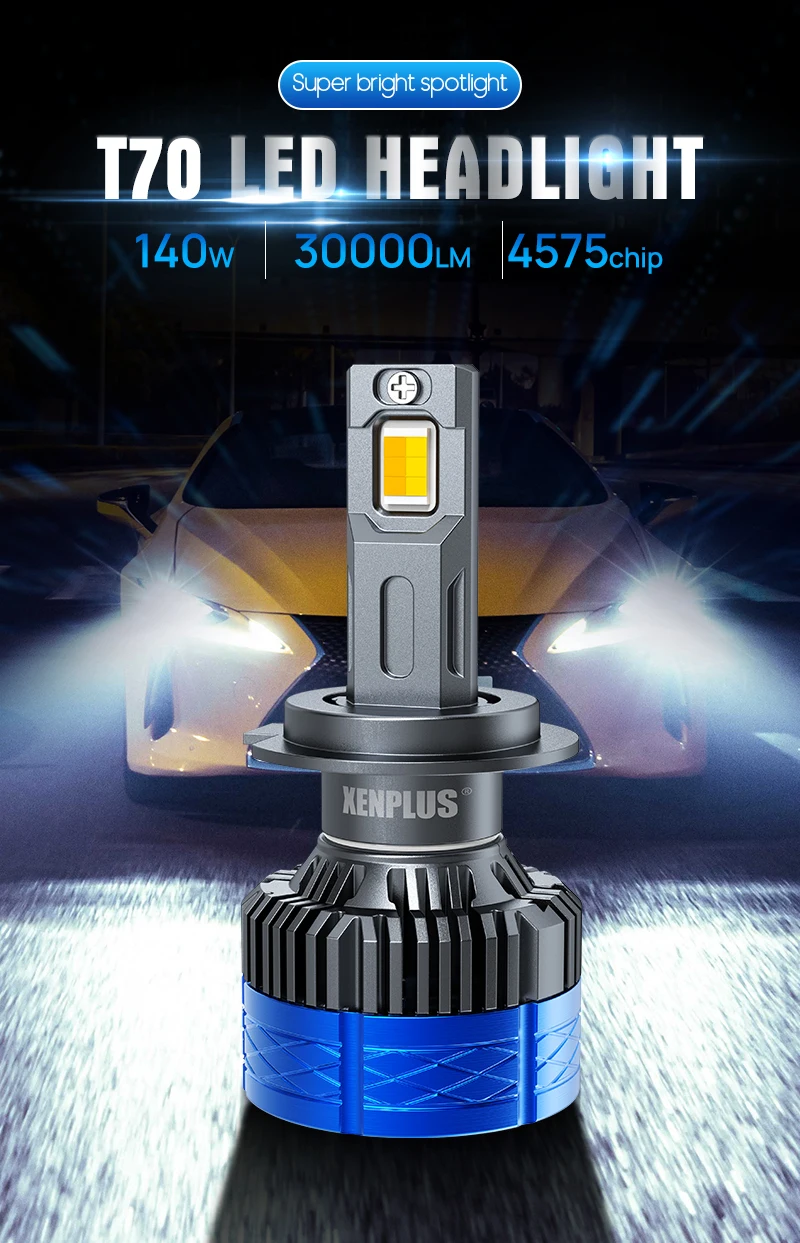 Xenplus T70 140W 30000LM 3 Colors 6500K 4500K 3000K 4575 Chips H1 H3 H4 H7 H11 9005 9006 9012 LED Headlight Bulb