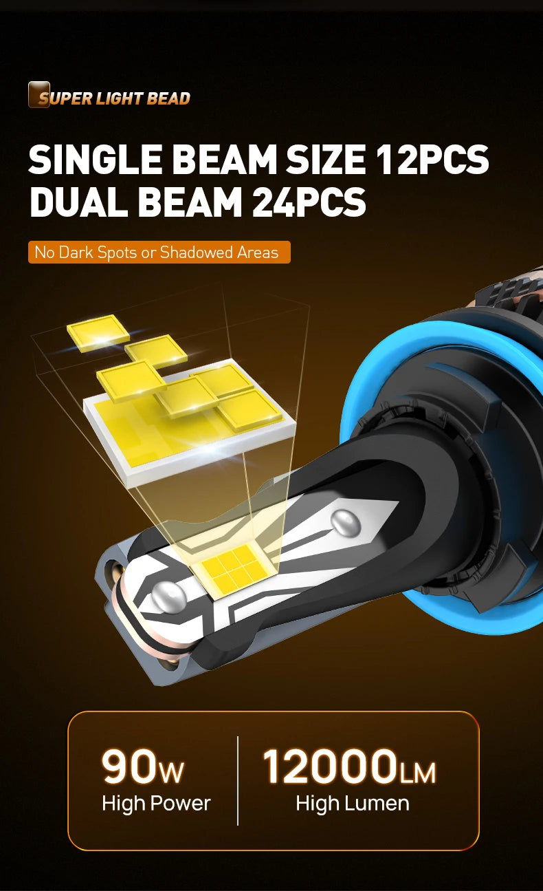 Manufacturer U16 12V 90W 12000LM 6000K IP68 H1 H3 H4 H7 LED H11 Headlight Bulb H13 9005 9006 9007 9012 Car Led Headlights