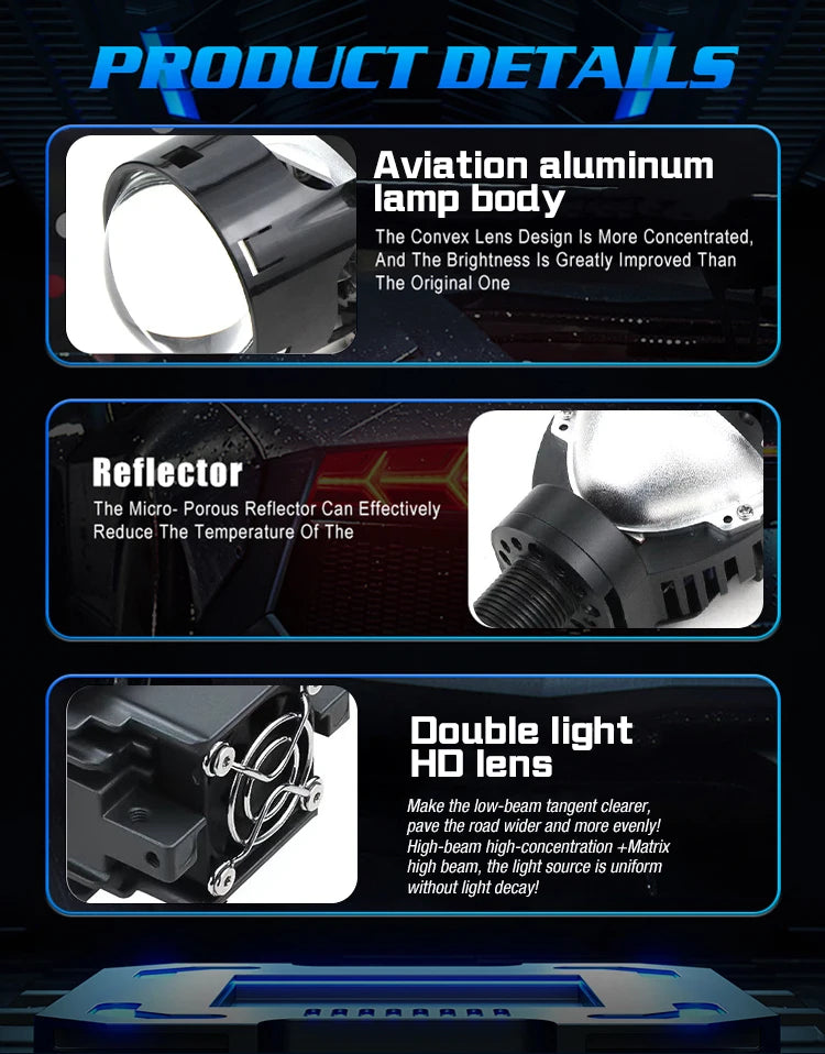 Xenplus Wholesale LP44 6000K 12v Bi LED Laser Projector 2.5 Inch Double Laser H4 H7 Rhd Lhd Laser Bi Led Projector for Car Auto