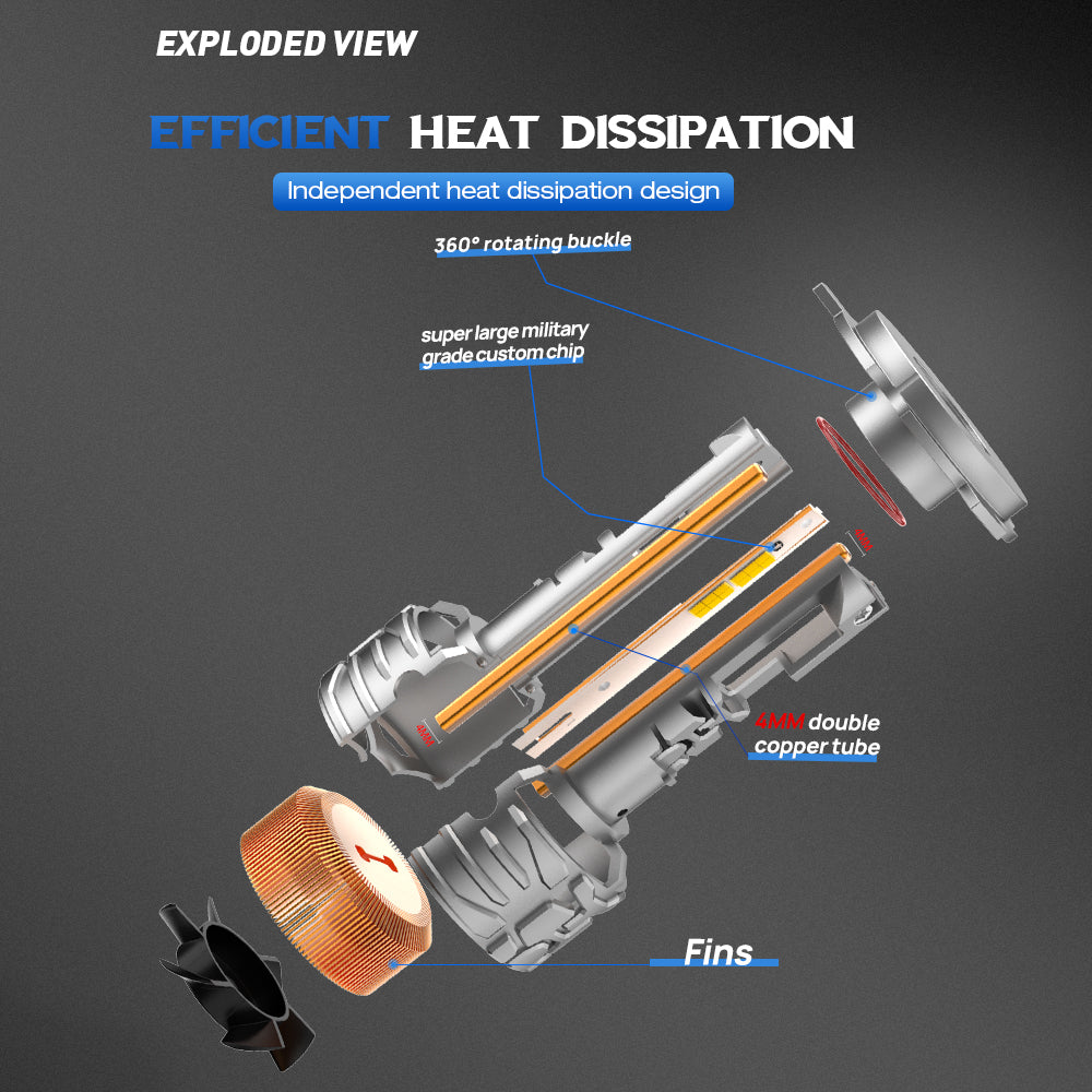 6. Two 4MM copper pipes with fins for heat dissipation, low temperature and long lifespan.